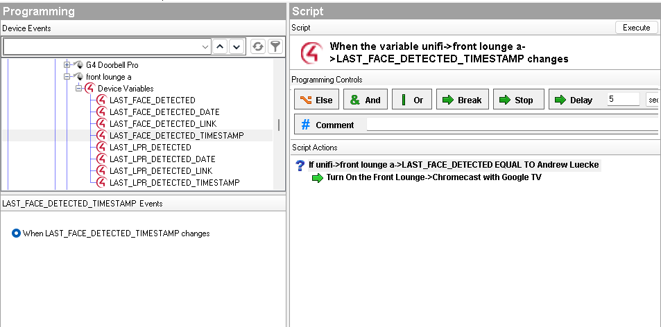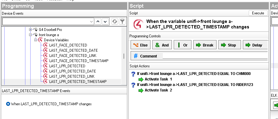 Some example programming is below using the LAST_LPR_DETECTED_TIMESTAMP as a trigger for the programming