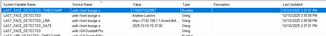 - LAST_FACE_DETECTED_TIMESTAMP: Computer readable timestamp for when face is detected