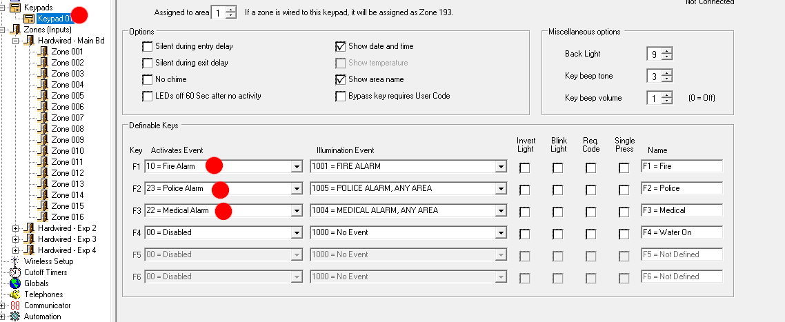 CONTROL4 ELK M1: Emergency Modes, Function keys or/and Chime settings not working