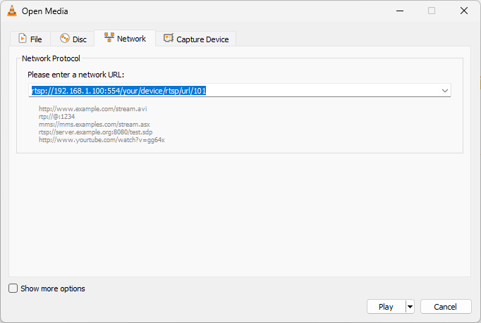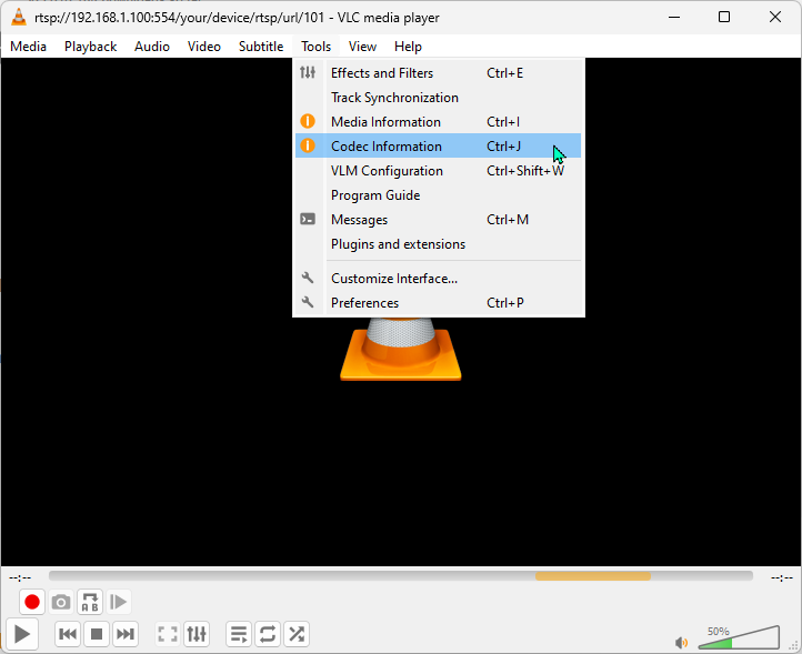 - The video device is providing the correct RTSP url
